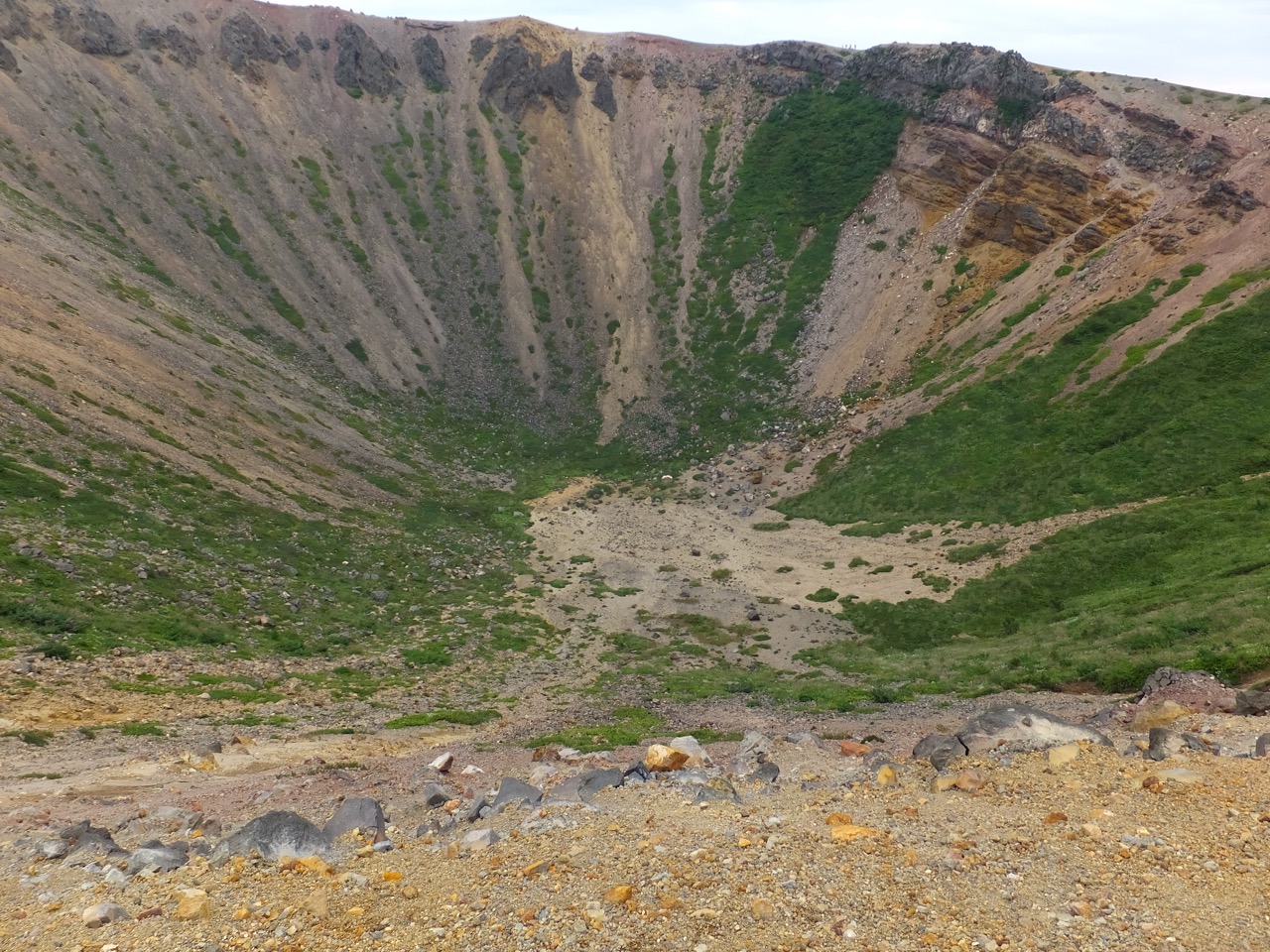 浄土平の駐車場からわずか15分で富士山型の火山の山頂です。これほど楽にコニーデ型の火山に登れるところもないでしょう。登山といっても全部階段になっているので普通の靴で十分です。それでもって素晴らしい景色と火口の大きさ実感ができます。文句なくオススメです。