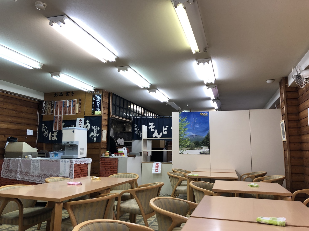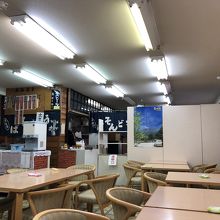 売店の2階にうどんやお蕎麦が食べられます。セルフサービスです。