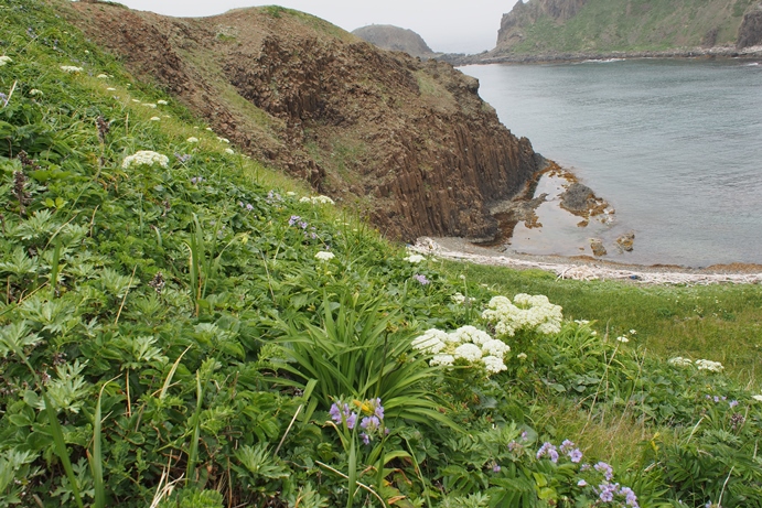 まあまあ歩いてたどり着けるスポットです。もちろんバスの駐車場からの話ですが・・少し山脇の坂道を登ってからは緩やかな勾配です。しばらくして視界が開ける光景は絶景かな!緑色の山肌と咲き乱れる花々と澄んだ海のコントラストは素晴らしい~