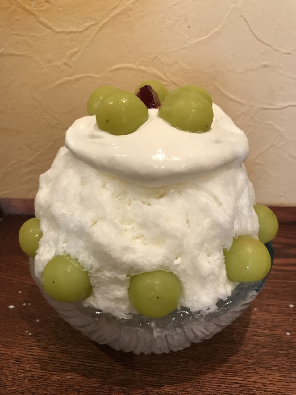 いつも福島駅から見えていた看板!気になって電車を降りて、行ってみました!フルーツのかき氷、クリームブリュレのかき氷などいろいろなジャンルのかき氷あって驚きました。マスカットの氷を注文しました。マスカットがいっぱい入っていて嬉しかったです。また氷もふわふわでよかったです。