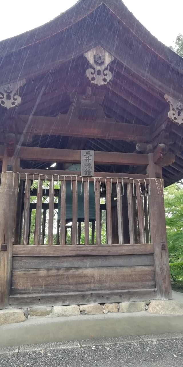 今年3回目の西国三十三所巡り旅の初日は10番三室戸寺の後、14番三井寺を参拝しました。大変大きなお寺です。仁王門を入りすぐ右手にある優雅な趣も感じる釈迦堂を参拝し、深い木立の参道の奥の石段を上り金堂に参拝します。豊臣秀吉の正室北政所によって再建された金堂は大変大きなお堂で威容を感じます。御本尊の弥勒菩薩は秘仏ですが左脇陣、後陣、右脇陣と回って大黒天半跏像、愛染明王、毘沙門天、地蔵菩薩、尊星王像、不動明王、大日如来、釈迦如来などの諸仏を厳粛な雰囲気の中、間近に拝むことができます。金堂の左手前に鐘楼があります。梵鐘は「三井の晩鐘」として知られています。参拝中、何度か鐘の音を耳にしましたが荘厳な音色と長い余韻が印象的でした。金堂の左側(西)奥に接して閼伽井屋があり霊泉は天智・天武・持統天皇の産湯に使われ三井寺の名前の由来になっています。金堂の左側(西)奥の一段高いところに霊鐘堂があり中に弁慶の引摺鐘と弁慶の汁鍋があります。更に順路に従って進んで行くと巨大な回転式の八角輪蔵のある一切経蔵、凛とした雰囲気の唐院(三重塔、灌頂堂、護摩堂、大師堂)があります。文化財収蔵庫を拝観し、参道を進み石段を上り切った高台に西国第十四番札所の観音堂があります。大変立派なお堂です。御本尊の如意輪観音は秘仏でお前立に有難く参拝しました。観音堂から更に石段を上ると展望台があり観音堂、大津の町並み、琵琶湖が望め見事な眺めです。三井寺は広大な山内に多くの堂宇が点在し茶店での休憩(力餅、美味、お薦め)も含め参拝に2時間20分掛かりました。季節を変えじっくりと再訪したいお寺です。