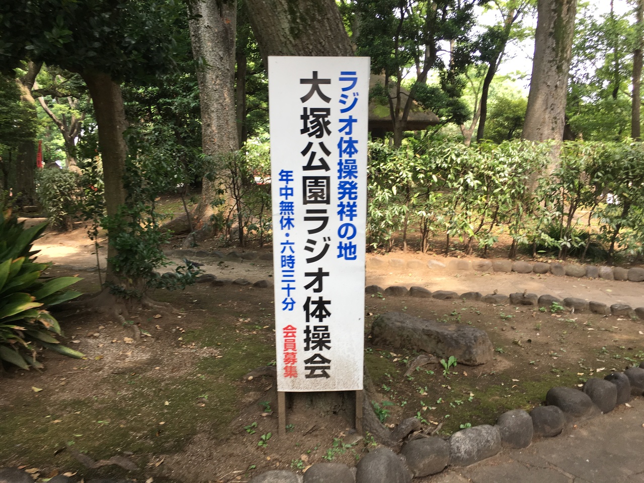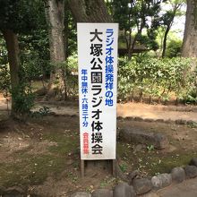 バス通りから入ると正面に「ラジオ体操発祥の地」と記した立て看板がありました。千代田区の佐久間公園でもラジオ体操発祥の地と自称していますが、同時期に始めたことは間違いないのでしょうね。公園には噴水あり、広場ありとこぢんまりとした中にも変化に富んだ場所でした。