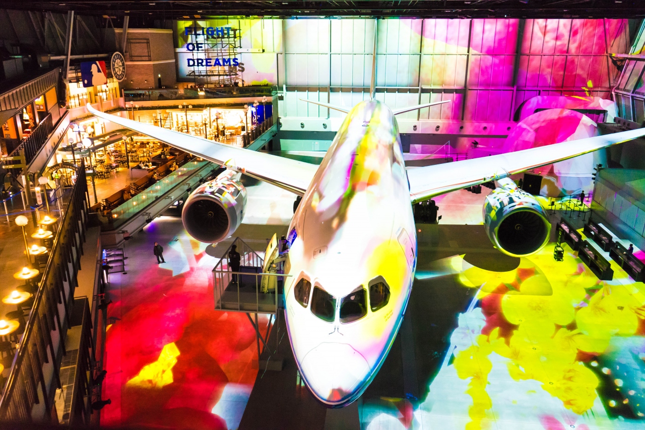ボーイング787とチームラボの映像と音のショー「フライ ウィズ 787 ドリームライナー」はとても幻想的で華やかでオススメです。