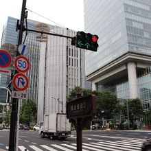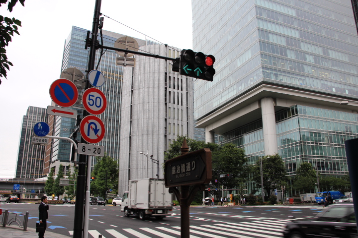 鍛冶橋通りは、東京駅の南側で丸の内側と八重洲側を繋ぐ幹線です。それ故自動車の交通量は多いです。鍛冶橋通り沿いには東京国際フォーラムや東京府庁跡、鍛冶橋跡などの案内板が点在しているので歩きながら東京の歴史に触れられる点が良かったです。