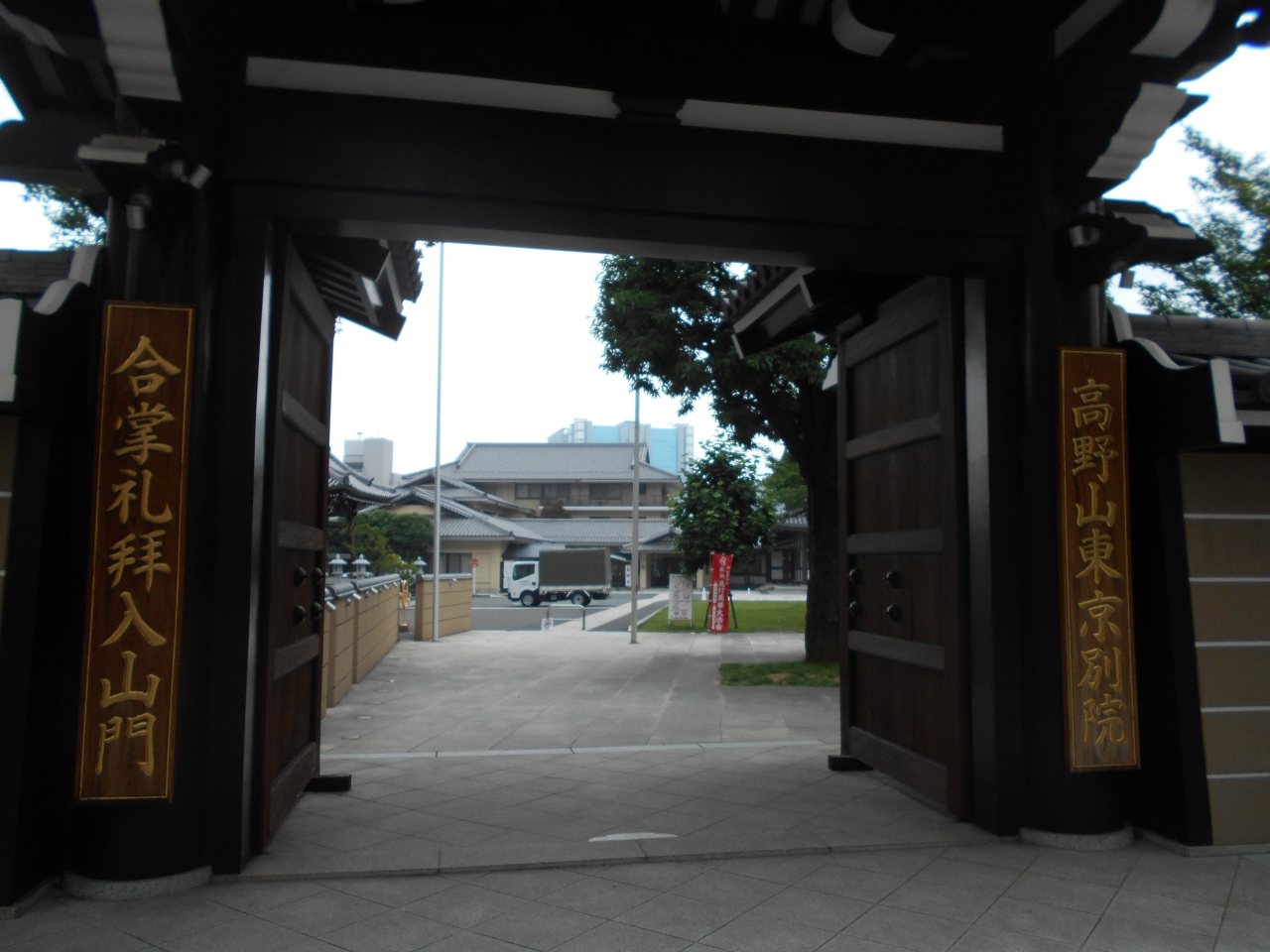 山門には右に「高野山東京別院」、左に「合掌礼拝入山門」と大きく金文字で書かれ、いやがおうでもなく緊張させられる