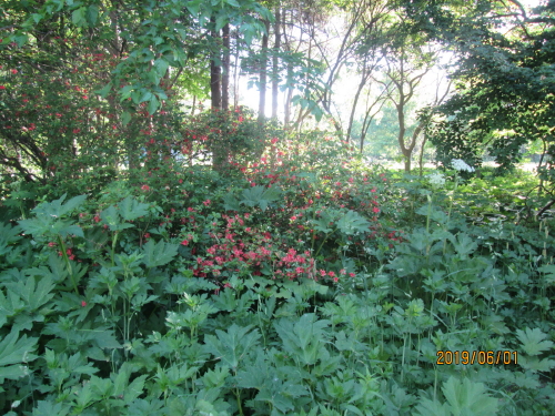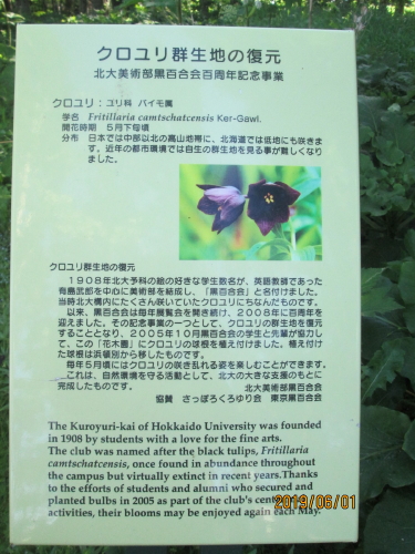 この花木園は 花き・造園学校などの教育実習の目的で設けられているもので、北国に多く見られる花木が自然風に植えられています。できるだけ手を加えないで野性味を残し植物間の競合条件や林床の野草等も観察対象としていますので舗装面、園路、芝生地以外には立ち入らないようお願いいたします。農学部付属農場。