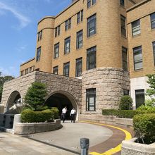 建て替え後も正面のファサード部分に、昭和の初期の典型的公共建築の意匠が復元されています。