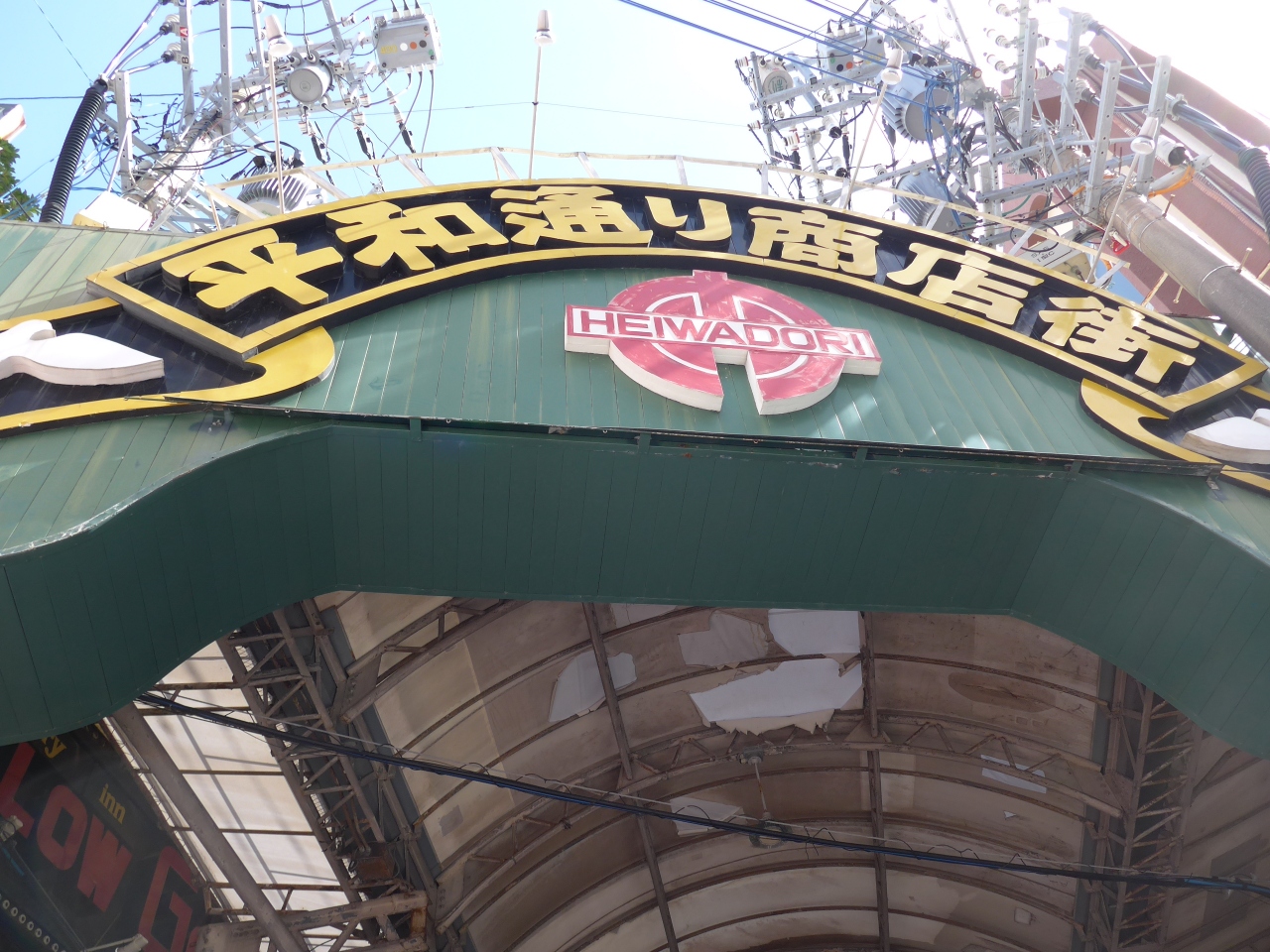 家族で福岡へ戻る前に那覇空港に荷物を預けて牧志市場のがんじゅう堂で夜光貝を食したく歩行者天国の国際通りを通って平和通り商店街を抜けて公設牧志市場の入り口まで来て、びっくりしました。毎月第四日曜日は定休日の文字がシャッターに描かれていました。調べずに訪れたのもまずかったですがとっても残念な思いでした。