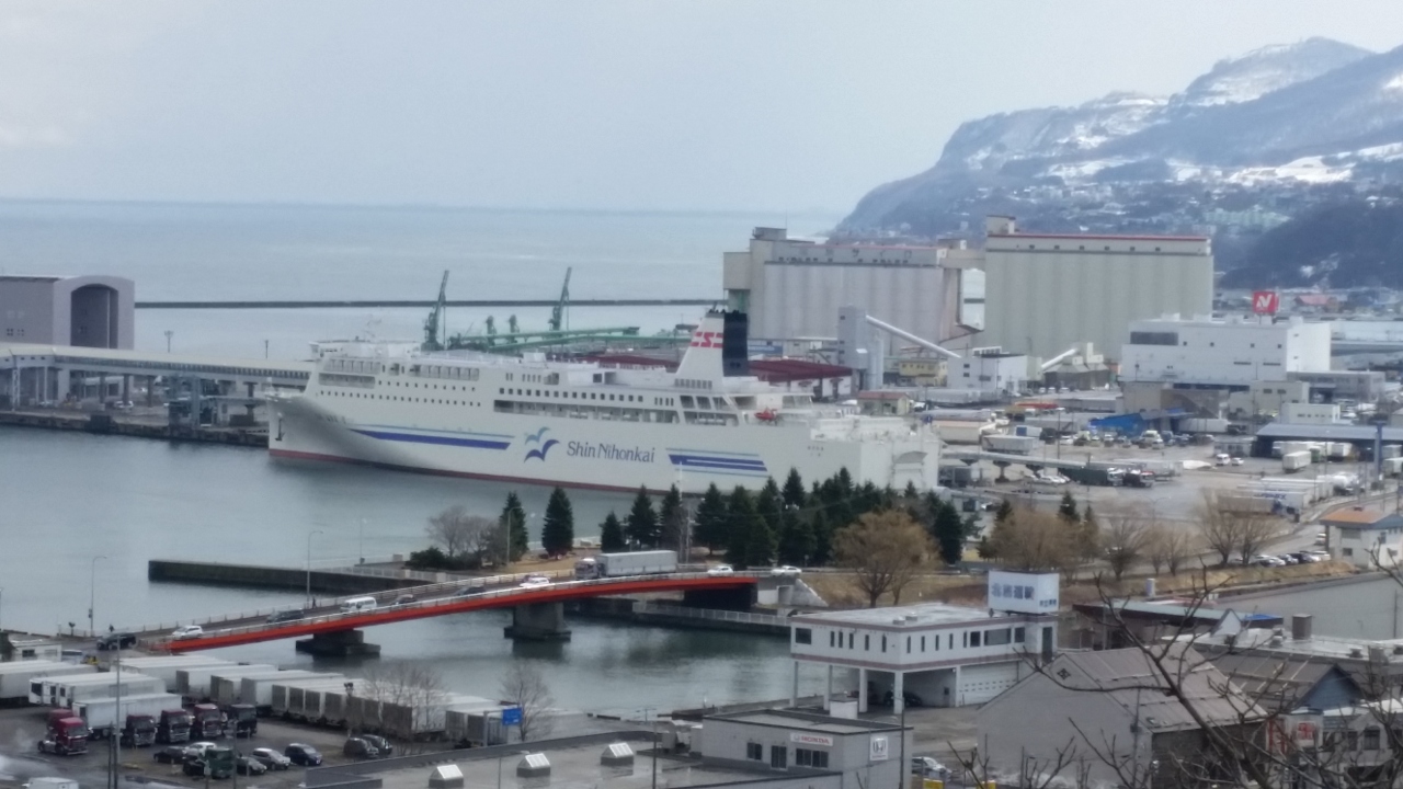 商店街を抜け,坂道を登って行くと「水天宮」の案内を発見しました.階段を上がってみるとそこから小樽港を見下ろせる素晴らしい景色に出会えました.お参りを済ませ,しばらく小樽港,小樽港に停泊する新日本海フェリー,雪が積もる天狗山を眺め,小樽駅に向かいました.