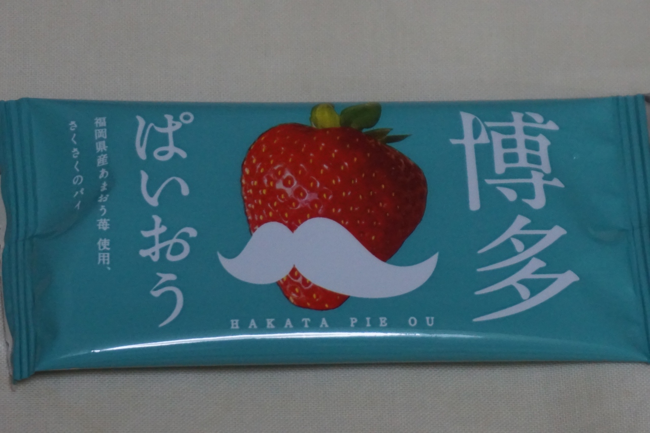伊都きんぐの看板商品は「博多ぱいおう」。パッケージはいちごのデザインだし、あまおうの語感も連想させるので、いちごの期待しちゃいます。で、包みを開くと、けっこうインパクトのあるいちごの香り。揚げたパイ生地はそこそこですが、この香りだけでも、価値ありのお菓子です。
