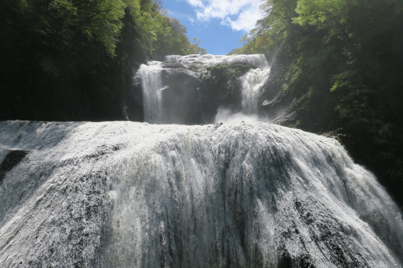 水郡線の袋田駅から歩きました。滝まではかなり距離があったのですが、周りの緑がきれいで気持ちよく、苦になりませんでした。滝は結構水量が多く、特に第一展望台からの景色は目の前に滝が広がり、水しぶきも飛んできて大迫力でした。