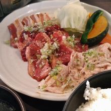 牛カルビサガリ定食に追加で北海道産豚ガツを注文。
