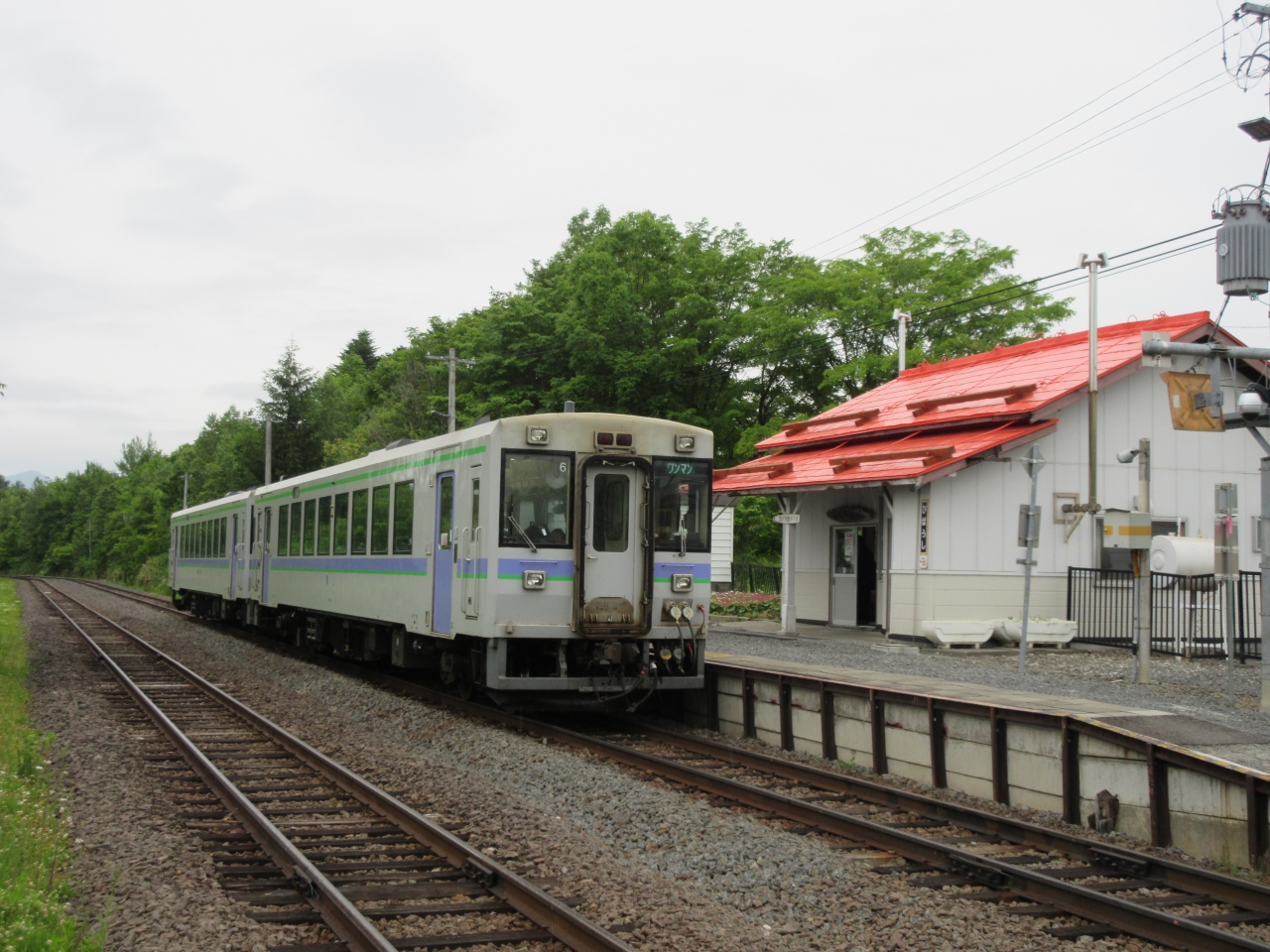 旭川から富良野間の路線。6月から10月にかけてトロッコ列車の「富良野・美瑛ノロッコ号」が走っています。2両編成のワンマン運転でした。乗車していると停車することなく通り過ぎてしまう駅もありました。どうやらすべての駅に停車するわけではないようです。だからといって、快速だとか各駅停車だとかいう区別はなさそうです。
