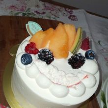 私はショートケーキ(ホール)を。この時期はメロンのショートだそうで、しっかり甘いショートケーキでした。
