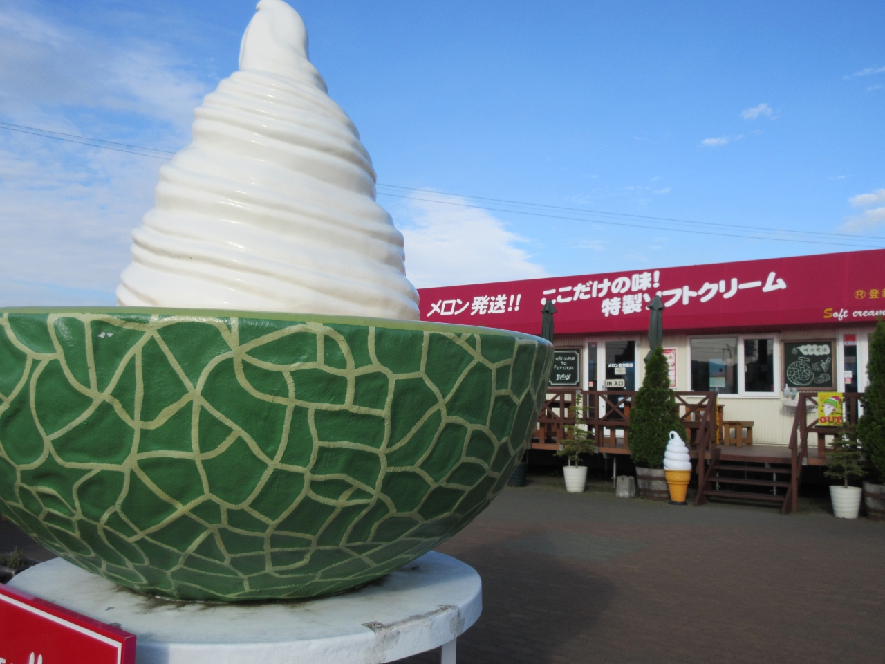登録商標にもなっているというメロンの上にソフトクリームをトッピングさせた「サンタのひげ」。せっかくなのでという思いもあり、隣にある温泉施設に行ったついでに寄りました。が、想像以上のお値段だったので遠慮しました。個人的にはメロンとソフトクリームは別々のほうが良いのではと思いますが・・・。