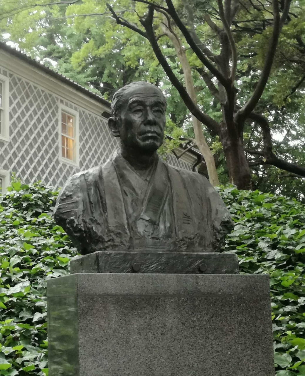 慶応義塾大学の創設者「福沢諭吉」の銅像なので、三田キャンパス内でも目立つ場所にあるかと思っていましたが、人通りも少ない演説館前の寂しい場所にあったので少し驚きました。それでも10000円札でお馴染みの「福沢諭吉」だけあって親しみを感じる銅像で、見ごたえがあって良かったです。