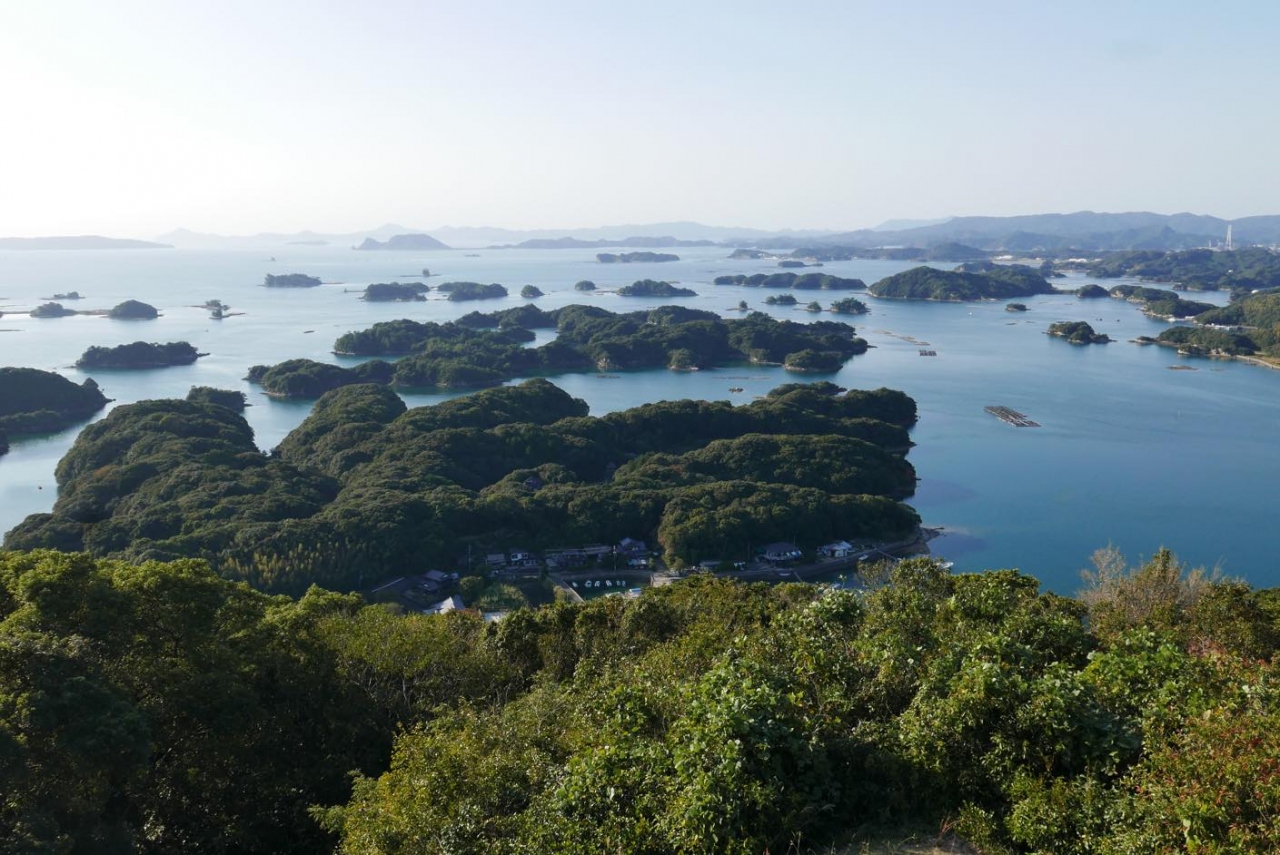 佐世保市内から西南の方へ車で20〜30分くらいのところにあります。駐車場は大きく売店もあります。そこから花畑の横を歩き展望台のある坂道を登ります。展望台の上から眺めると九十九島を眺めることができます。たくさんの緑豊かな島々が一望できてとっても良い眺めです。海も綺麗に見えて絶景です。坂を登って見るかいがあります。