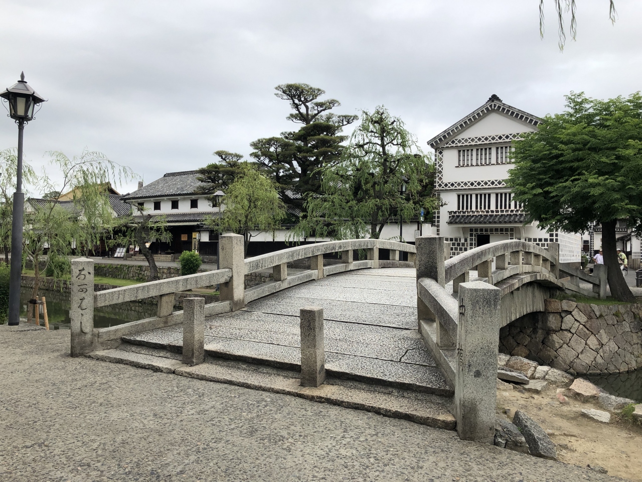 倉敷美観地区を流れる倉敷川の少し折れたところの、倉敷館や倉敷考古館に面したところに架かる橋です。倉敷美観地区を歩くときには、倉敷川と倉敷川に架かる橋がいい目印になりました。この橋からは北西方向にも南方向にも美観地区の街並みが楽しめ、写真を撮っている人が多かったです。