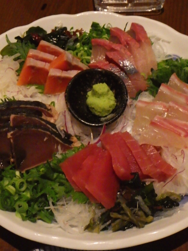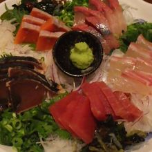 刺身の盛り合わせ、鍋、揚げ物、ソーセージ、コロッケ、ホタテ等の料理が提供される。