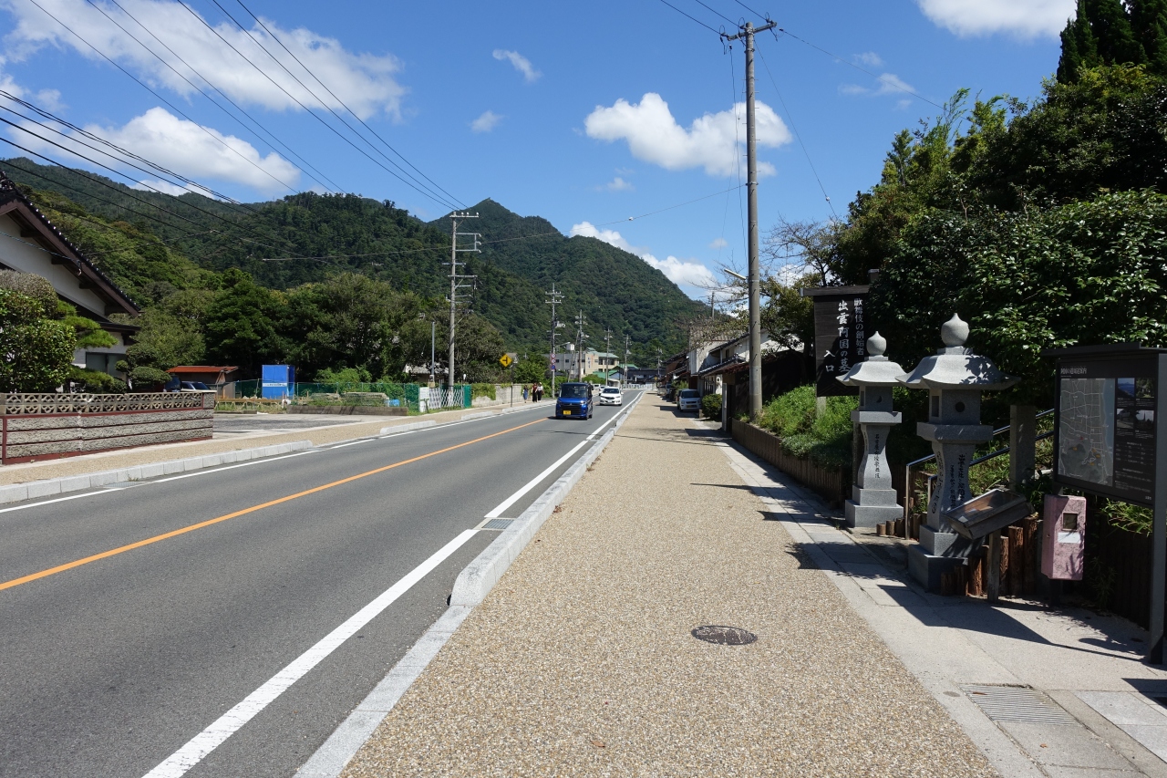 出雲阿国は謎の多い人物ですが、これだけゆかりの場所があるとやはり阿国は晩年出雲で生活していたのかなと思ってしまいました。道路自体はきれいに整備されてはいますがごくごく一般的な道路です。