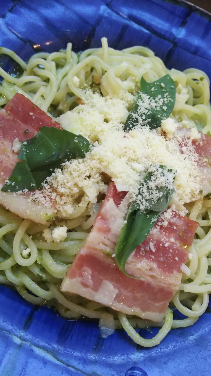 この日はジェノベーゼのパスタを食べました。とてもバジルの風味がよくて、にんにくもパンチがきいてるなと思います。また、チーズももともとたっぷりかかっていて、ジェノベーゼの爽やかさととてもよくマッチしています。オリーブオイルの風味もよくて、グリーンもあざやかです。見た目にも美しくおいしいパスタでした。
