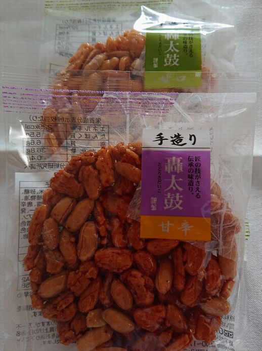 千葉県にある豆菓子専門店です。千葉県は落花生の生産量が多いので有名ですが、こちらの「轟太鼓」はその落花生がふんだんに入っていました。深煎りの落花生とおかきの組み合わせで、ちょっと甘めで食感もよく美味しかったです。
