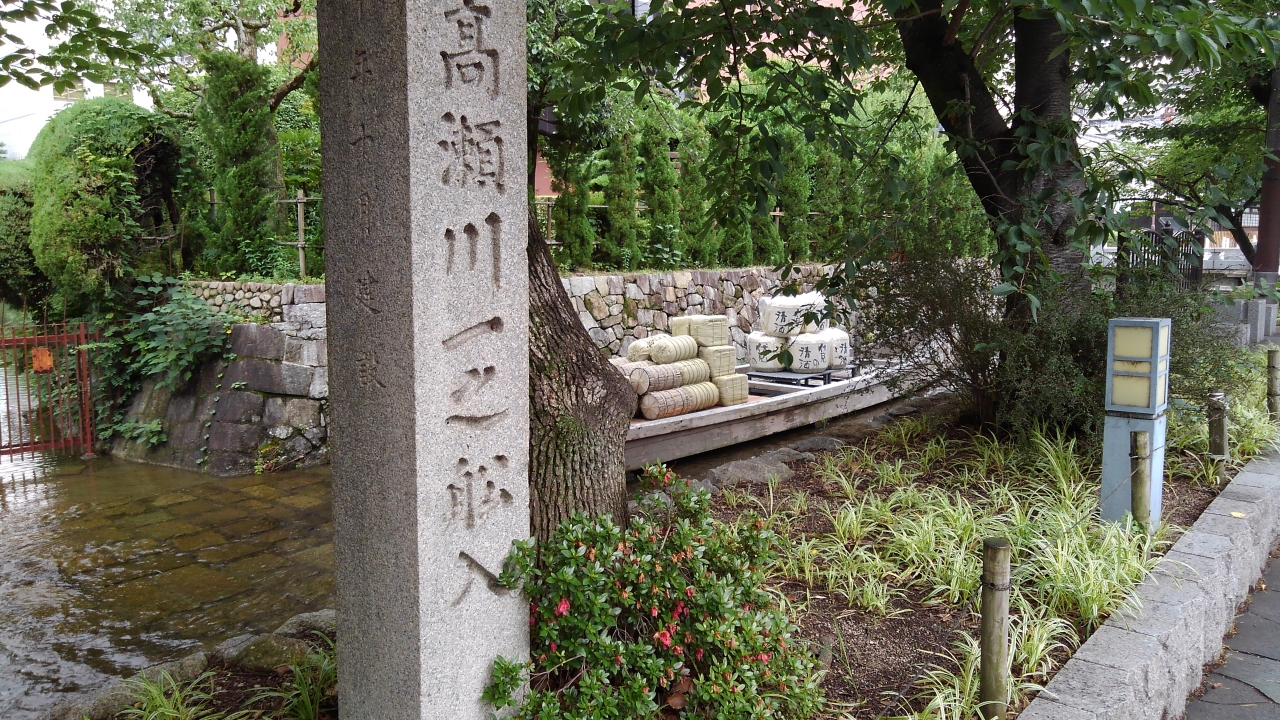 繁華街の木屋町通を北上し、さらに上がっていくと広い御池通に突き当たる。このあたりで観光客は消えるのだが、さらに上がると粋な高瀬舟と船入の風景に出会うことができる。