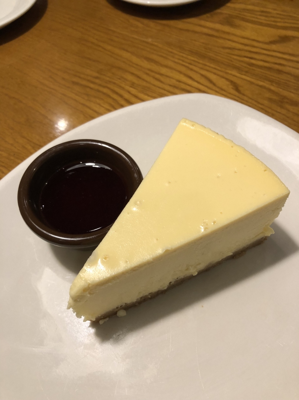 デザートにNYチーズケーキをシェアしましたが、こってりビックサイズでその日の深夜胃もたれに苦しみました・・・