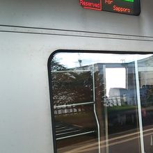 自由席が2両しかない為、混雑が予想されましたが、登別発時点は勿論、苫小牧を発車した時点でも所々誰も座らない2人掛けシートがあり、意外に空いていたので驚きました。