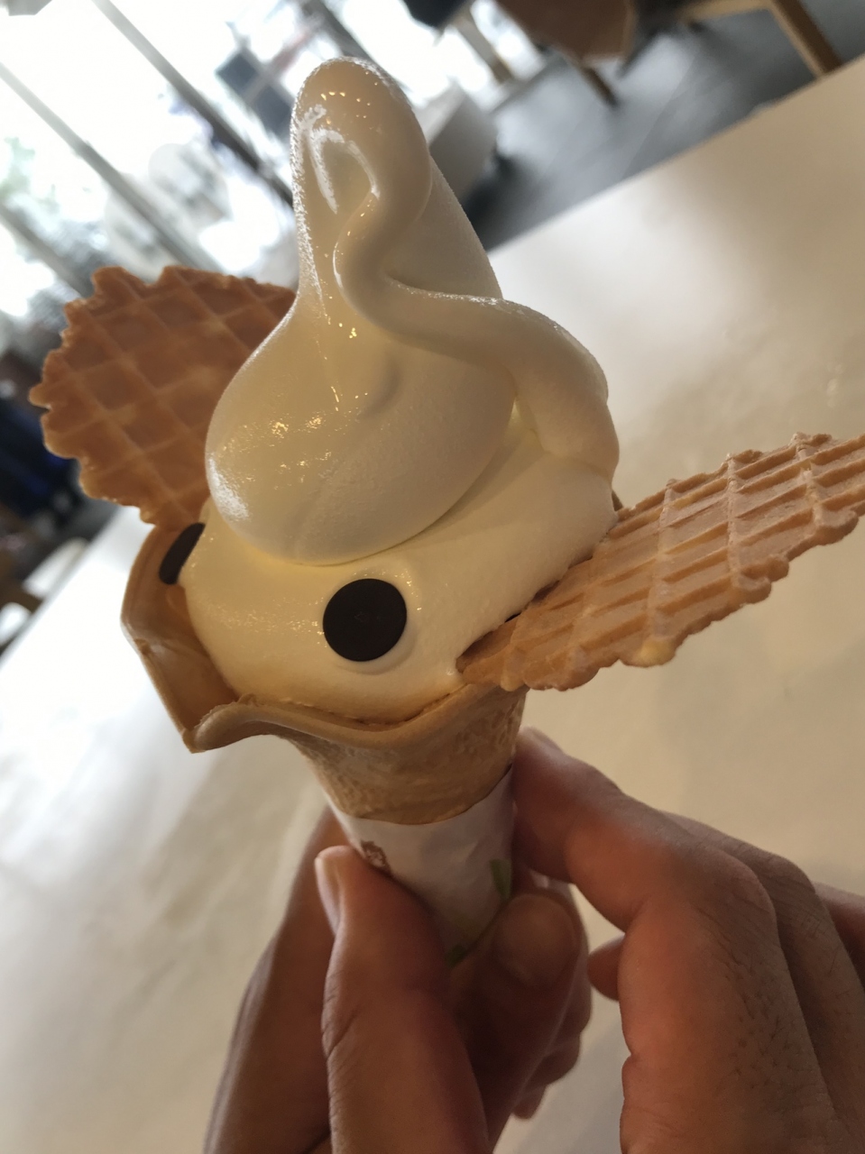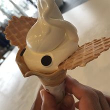 ソフトクリームにワッフルがささったものですが、