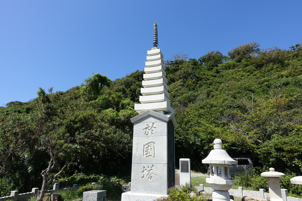 奉納山の中腹に建てられた出雲阿国を顕彰する石塔です。石塔には阿国のレリーフがデザインされており、時代を経ても愛されていることが分かります。この場所は展望スポットにもなっていて、稲佐の浜や周辺の街が望めました。ただ、眺望に関しては、さらに登った頂上展望台からのほうがおすすめ。