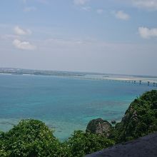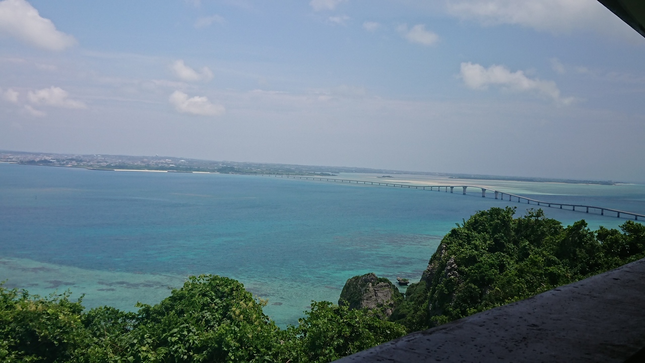 伊良部島にある展望台です。駐車場から日よけがない遊歩道を歩いていきます。整備されているので歩きやすいです。展望台は高台にあるので海と伊良部大橋の全景、対岸にある宮古島も見えて景色が良く、しばらく眺めていました。