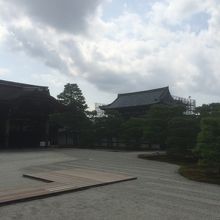 広い境内なので隅々まで周遊したせいか1時間ぐらいで回りました。敷地が広いので各建物が離れていました。券売所の裏側には門があり有料施設ですが建物を上がり庭園を見学出来ます。渡り廊下から見る池や庭の景色はオススメです。