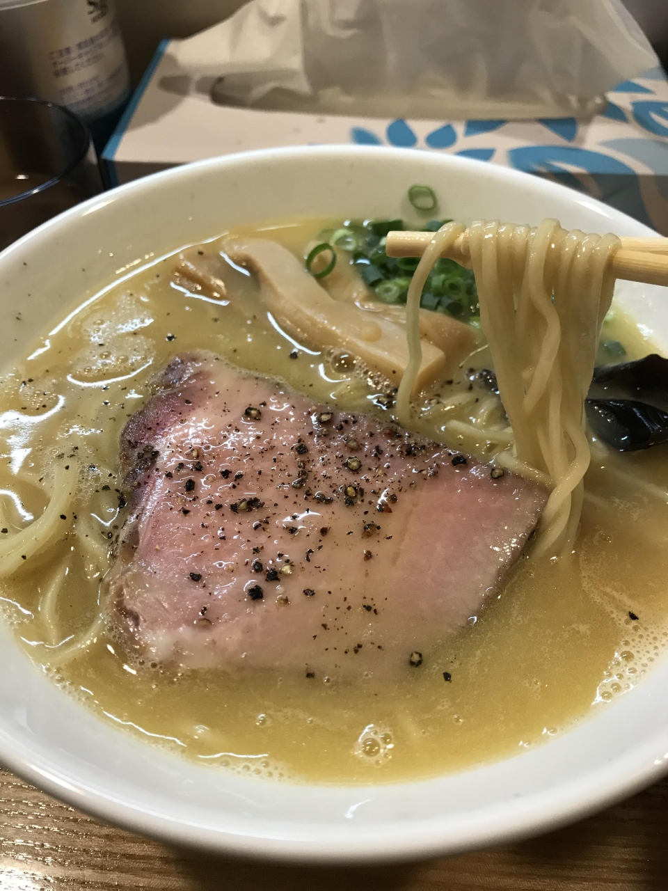鶏白湯醤油大盛り850円を注文。大盛りでもあまり多くないのでわ並では物足りないと思います。スープはおいしいし、チャーシュー厚めでローストビーフみたいで美味しい。キクラゲは不要かな?また行きたい店です。駐車場はありません。