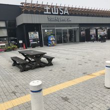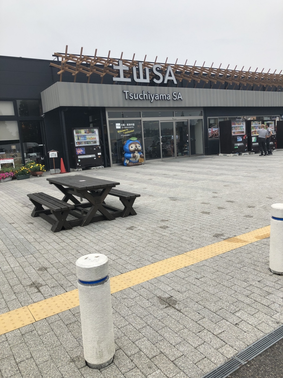 新名神なの土山サービスエリアです。駐車場が広く大きなサービスエリアです。造りがとても特徴的で、上りも下りも同じ建物ます。上りの駐車場と下りの駐車場の間に建物があります。軽食関係が非常に充実していました。