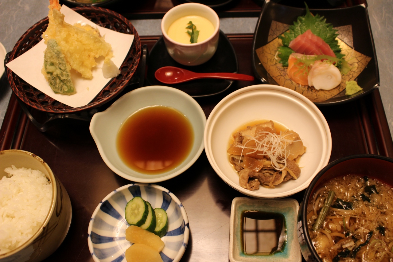 注文した和風膳@1,380円は蕎麦かうどんかが選べて、1品ずつ丁寧に盛り付けられています。