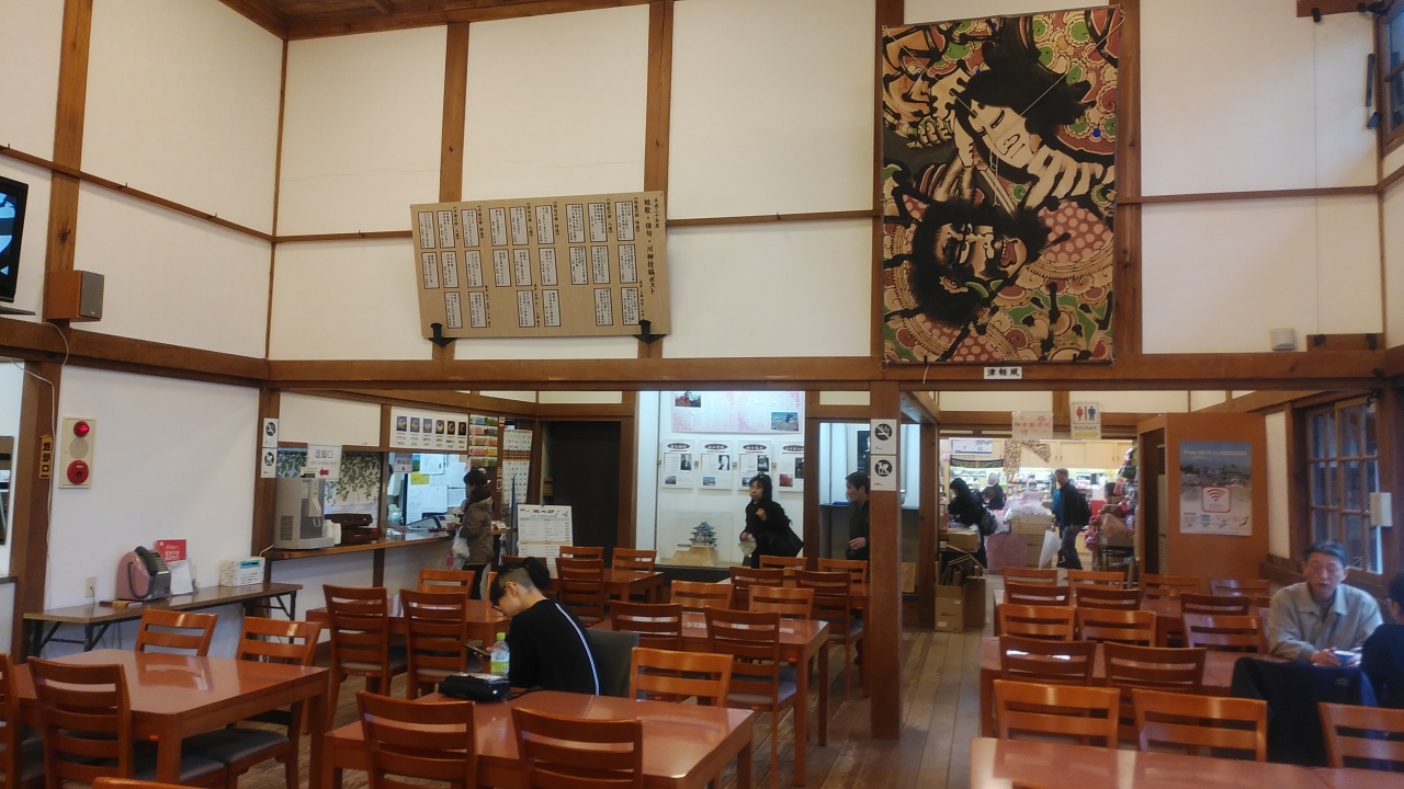 広大な弘前城内の本丸から護国神社の中間にあり、休憩所には軽食・喫茶と武家の殿様と姫様の着付け体験が出来る休憩所と併設された物産販売所には観光土産やお菓子、絵葉書等が販売されていました。弘前城は想像よりも莫大広く全部観光すると早くて4時間位かかりましたが、途中休憩するのに最適な場所にあったので、喫茶「北の郭」でアイスコーヒーとパイを食べて暫し休憩して英気を養う事が出来て観光が続行できて良かったです。