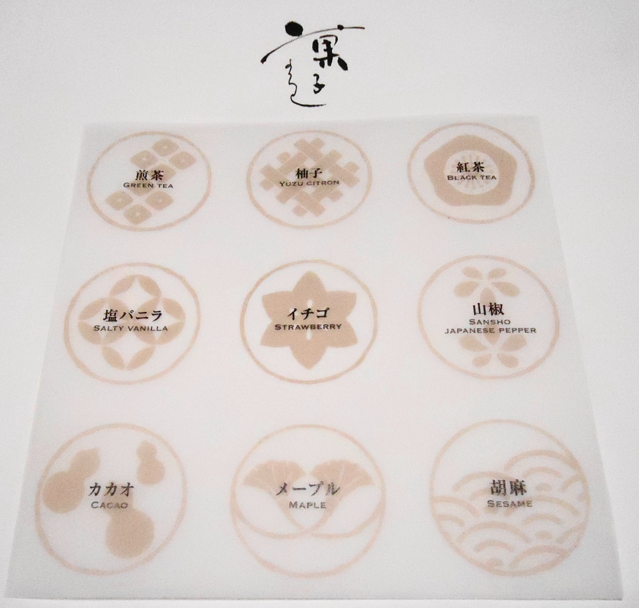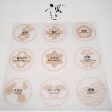 見た目も綺麗な9種類のサブレ、個々の素材が書いてあります。
