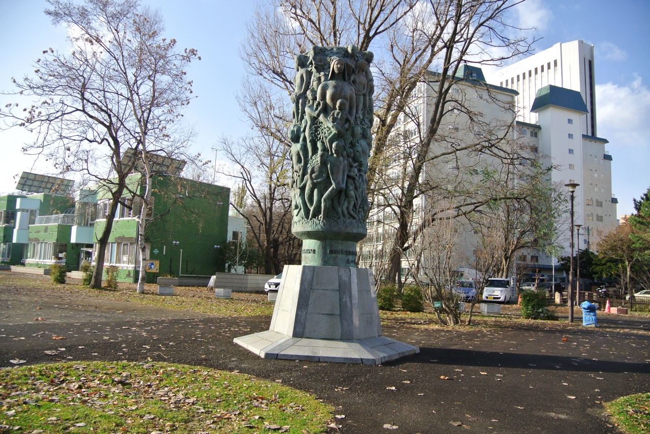 地下鉄中島公園駅を地上に上がって、中島公園・豊平館を見に行く時に見学しました。「森の歌」という題名の像ですが、自然の生命力みたいなものを表しているのかなあと思いました。また、札幌は銅像が多いところなんだなとも思いました。
