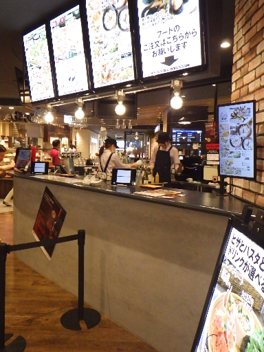 カウンターで注文し、代金を支払うと、ブザーを手渡されるので、ブザーが鳴ったら出来上がった料理を取りに行く、という方式になっている。