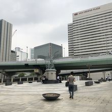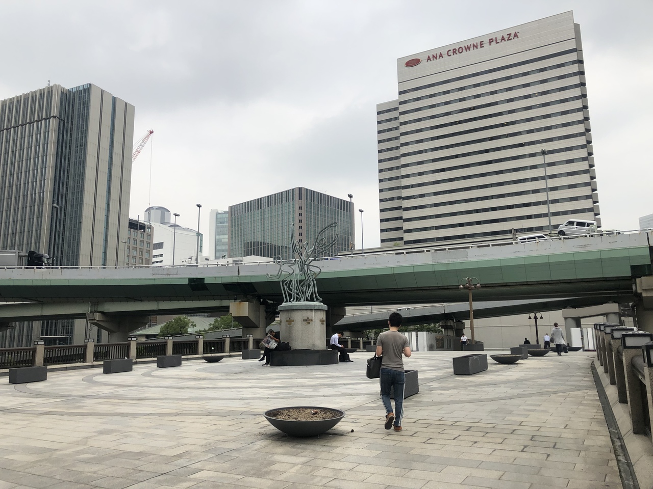 京阪電車の大江橋駅からすぐのところにあり、ここを渡るとANAクランプラザホテルがあり、その先が北新地です。