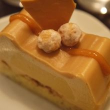 生地のしっとり感、ナッツのポリポリ感、杏クリームの甘酸っぱさ、キャラメルムースのほろ苦さ・甘さ・塩味等、一口で食感や味がどんどん変化していく。