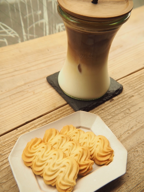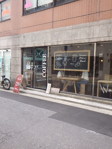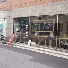外から見ると、美容サロンっぽい店構え。「COFFEE」の文字が大きく掲げている事により、辛うじてカフェだと分かる。