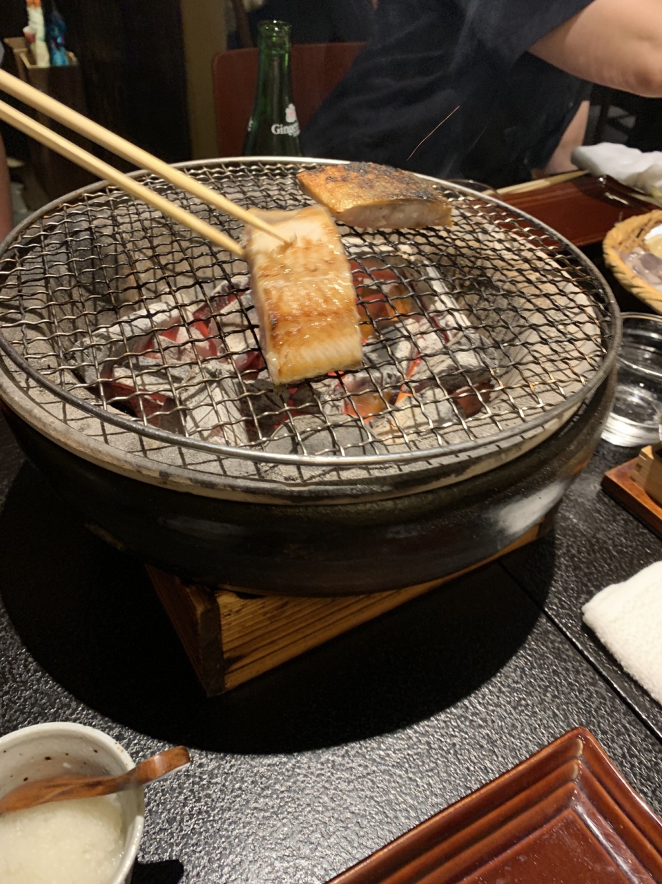 七輪での魚の焼き物と土鍋ご飯がセットのお店で、飲み物は日本酒中心に充実している。焼き物の魚はどれも新鮮で美味しい。土鍋ご飯も種類の違う米を食べさせてくれてとても良い店。