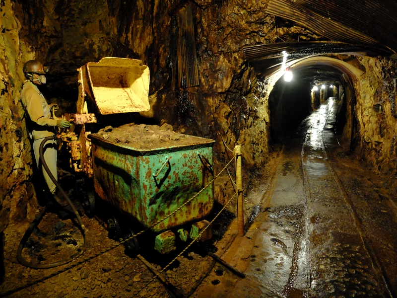 ここには鉱山歴史館や砂金堀などの体験メニューもありますが、迫力があってお勧めなのは江戸時代の坑道と近代坑道が見られる観光坑道(石切沢通洞坑)を歩いてみること。
