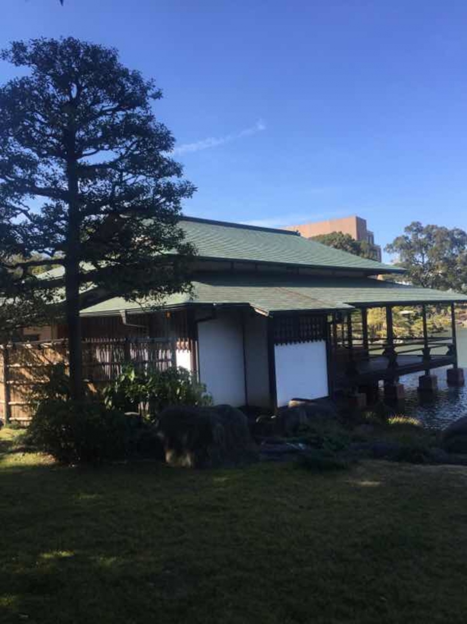 清澄庭園の中の大泉水沿いに建っている建物です。