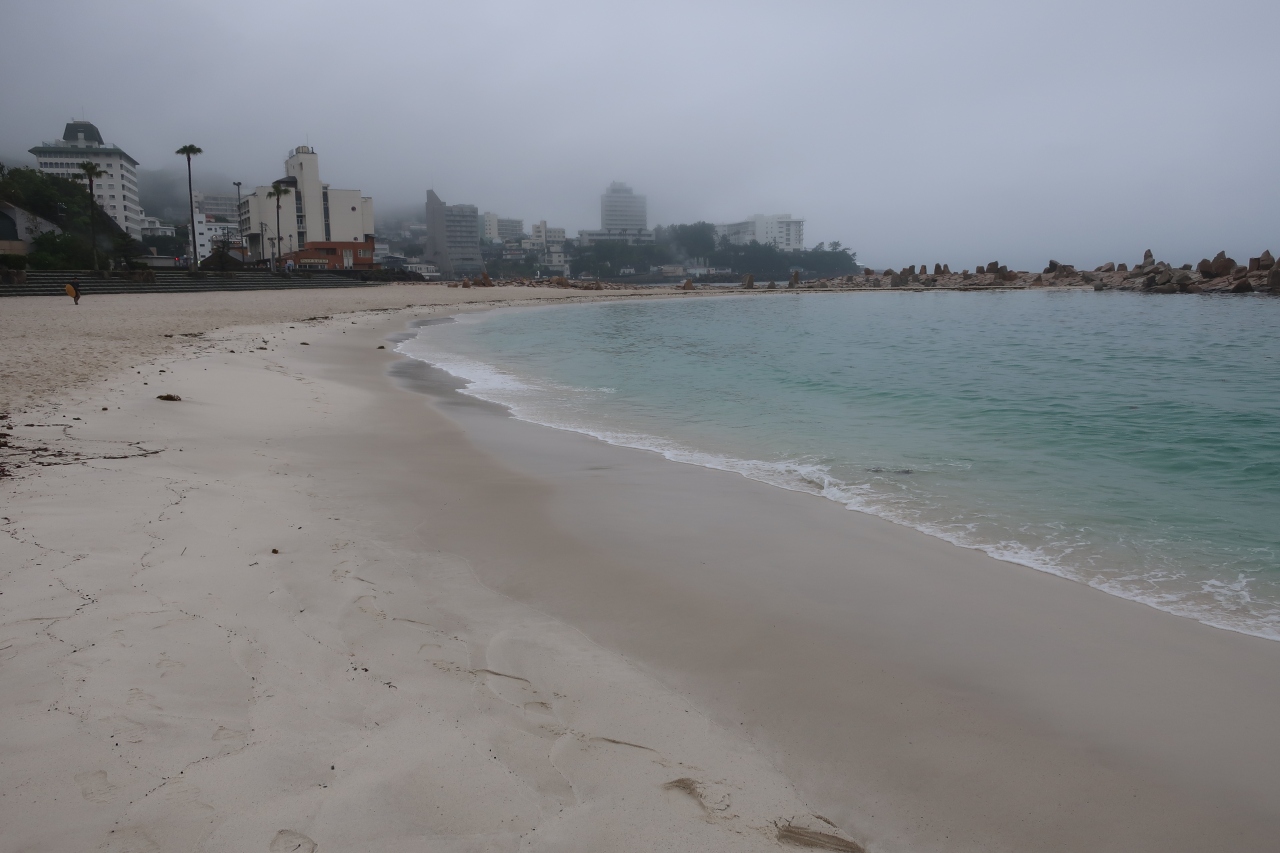 南紀白浜を代表する景勝地が白良浜です。円弧を描く砂浜は細かな白い砂で、海は透明度が高くとても綺麗な砂浜。まさにしらはまと言う名が合います。ゴミが殆ど落ちていないのも驚きでした。