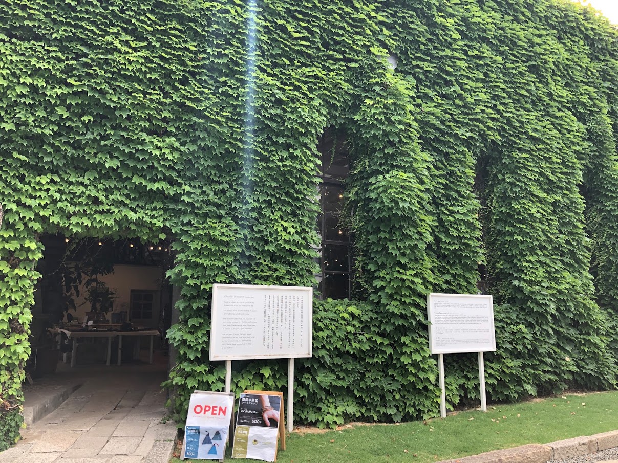 倉敷紡績の工場として使われていた建物で、ツタに覆われています。夏場に行ったので、壁が見えないほど葉が茂っていました。訪問時はいぐさの展示販売が行われていたので、館内はいぐさの香りが満ちていて、癒されました。
