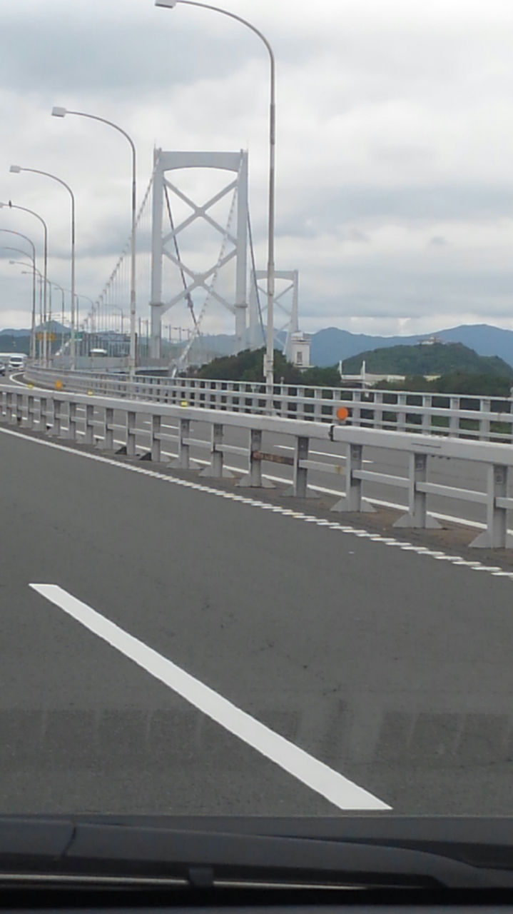 梅雨時の土曜に渡りました。途中の白い小さな灯台がある島の辺りには渦潮らしき波が見られました。風景が大変綺麗で素晴らしいです。ただ、車から降りてみはらせる場所がなく走りながらの景観のみなのが残念です。車の数は少なめでした。