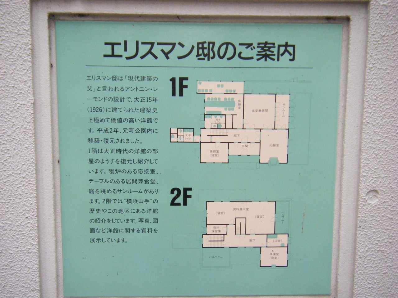 エリスマン邸は横浜の元町公園を登った先の山手の高台にある西洋風の建物になります。1926年にスイス人貿易商エリスマン氏の邸宅として造られた建物を復元したものが現在の姿になります。現在では洋館に関する資料館として一般公開されているほか、カフェも併設されており観光客の憩いの場として親しまれています。かわいらしい建物でほっと落ち着ける場所でした。